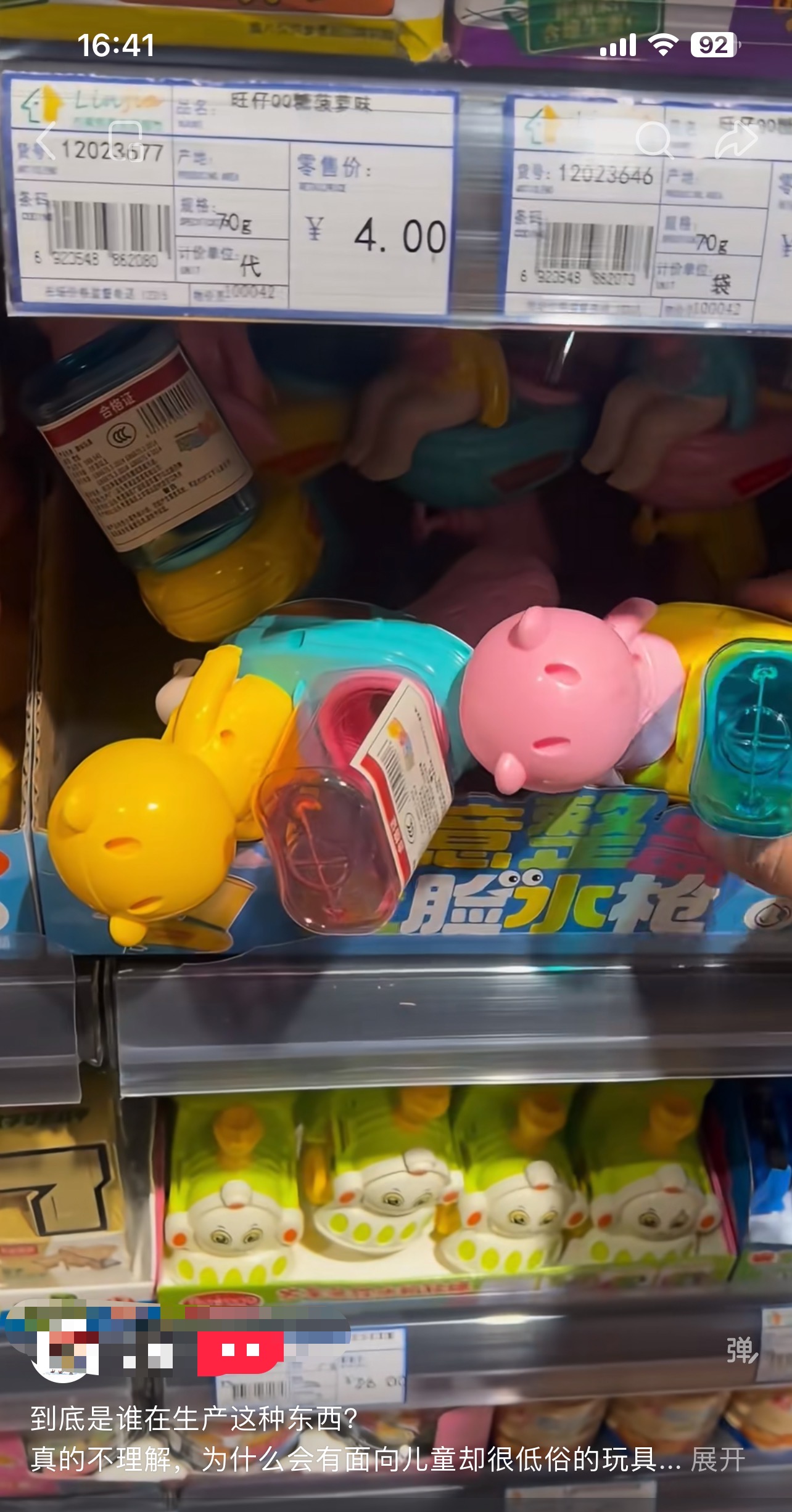 近日,有网友在社交平台发布视频,吐槽一款整蛊玩具“恶俗”。视频中,这款玩具整体外形设计为一名幼童坐在马桶上,按动机关,幼儿双腿会朝两边打开,露出一喷水头,并向外喷水。玩具架上,商品名称被标为“创意整蛊变脸水枪”,价格为19元。网友质疑“到底是谁在生产这种东西?”“为什么有面向儿童却很低俗的玩具”。